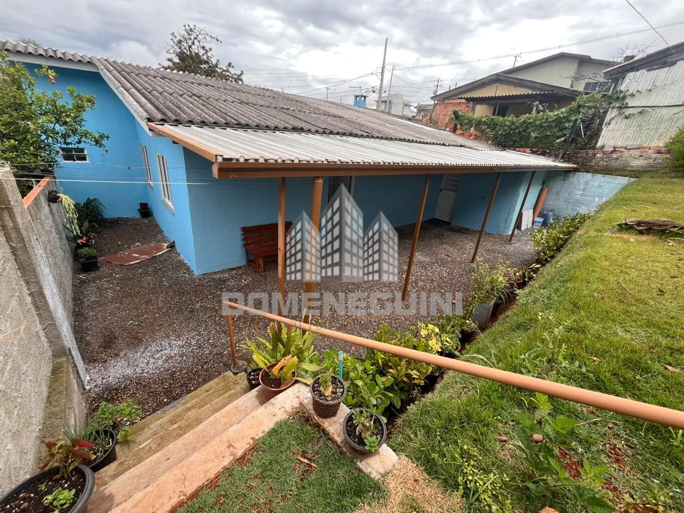 Garagem coberta com churrasqueira
